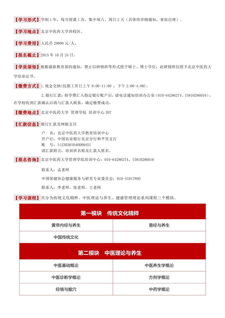 北京中医药大学首届健康管理高级研修班招生简章