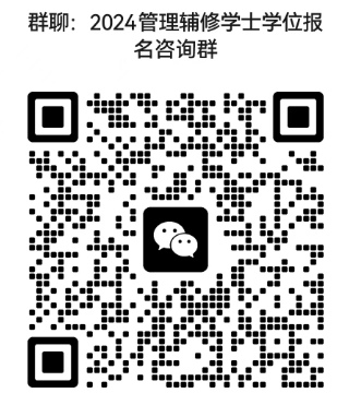 报名咨询:可加入“2024管理学辅修学士学位报名咨询群”(QQ搜索群号536369806或扫描下方二维码入群,入群后把昵称改为“学院+学号+姓名”),或扫码加入微信群进行咨询。