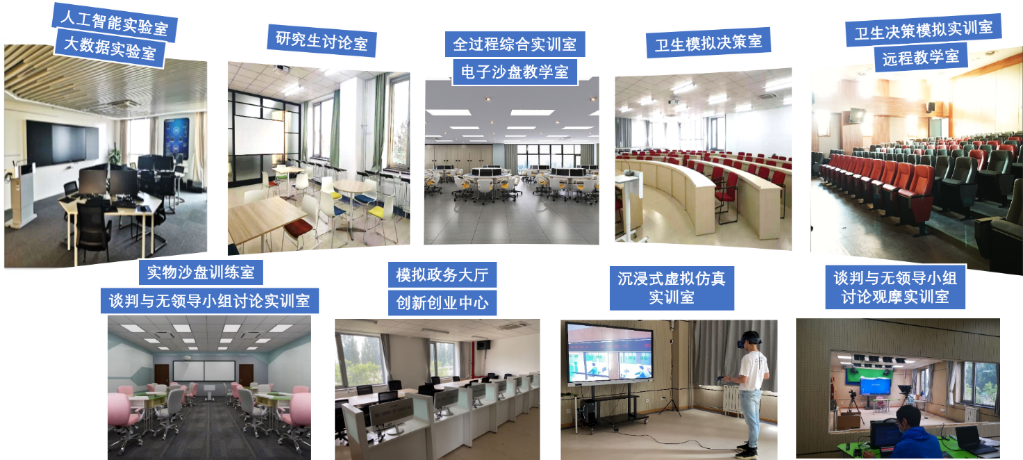 学院建设有行业首个卫生管理综合实训平台,平台包括:全过程综合实训室、医疗大数据实验室、健康服务实训室、行为科学实验室、虚拟卫生数据控制中心实训室等。通过全新的场景化教学模式构建的软硬件一体化实践教学场景,全面提升学生专业实践能力。依托全过程综合实训室的《医院会计与财务管理》课程获批2019年北京市优质本科课程。