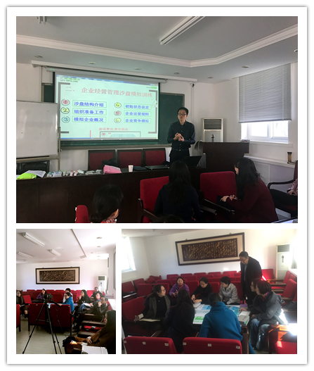 3月31日管理学院举办了首次ERP手工沙盘师资培训。新道用友有限公司资深讲师刘卓担任本次培训的主讲人和指导老师,本次培训共有18名老师参与,程薇院长和李瑞锋副院长也以普通学员的身份参加了培训。