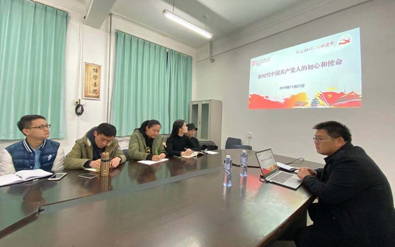 2019年11月21日星期四晚上6时30分,管理学院17级研究生党支部在和平街校区针灸学院楼110学术讨论室开展主题学习,并有幸邀请校党委统战部部长张小勇以“新时代中国共产党人的初心和使命”为题讲授专题党课。