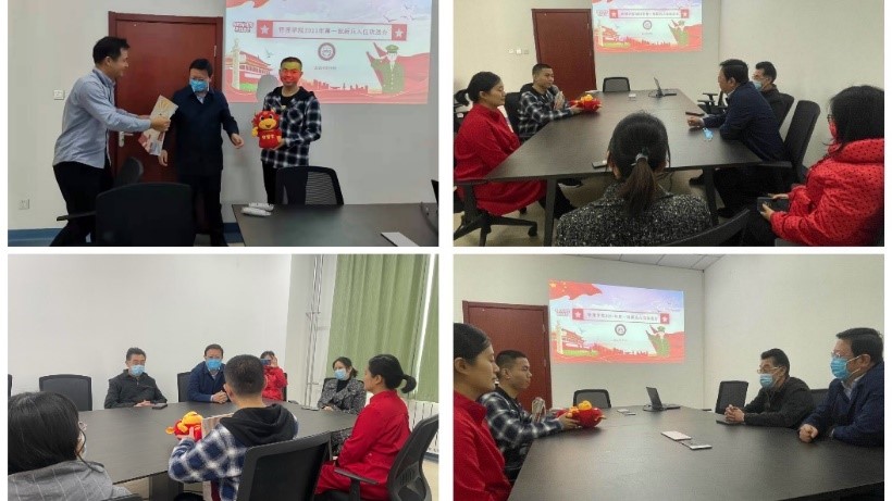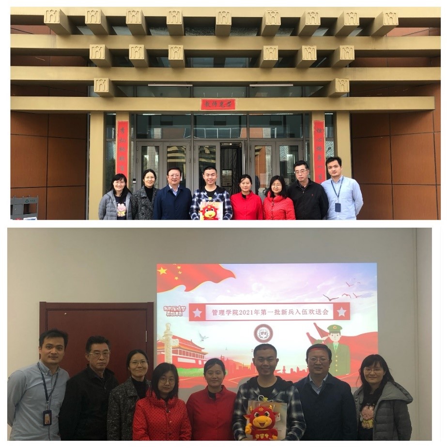 2021年3月8日上午,管理学院举行新兵入伍欢送会,为我校2021年首批入伍学生,19公管班郑天豪同学壮行。学院党委书记陈峥、院长李瑞锋、副院长王艺桥、王慧,以及院团委书记张瑶萱老师、学生班主任马爽老师参加会议。因课无法到场的学院赵静副书记,在会前通过电话为郑天豪送上了祝福和嘱托。欢送会由学院征兵专员周磊老师主持。