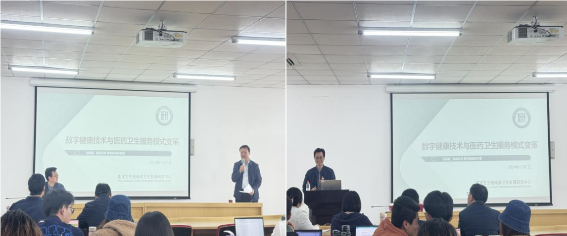 2025年4月7日下午,中国·开云“博约讲坛”学术交流系列活动在管理学院331会议室顺利开展,本次交流活动邀请到国家卫生健康委卫生发展研究中心国家药品和卫生技术综合评估中心数字健康研究室副主任(主持工作)邱英鹏作“数字健康技术与医疗服务模式变革”的讲座。讲座由管理学院李瑞锋院长主持,健康与医药行业管理教研室郑秋莹主任、医疗大数据与信息管理教研室郭凤英主任、翟兴副主任,马星光教授、黄友良副教授和唐燕副教授与100余名学生参会并交流。