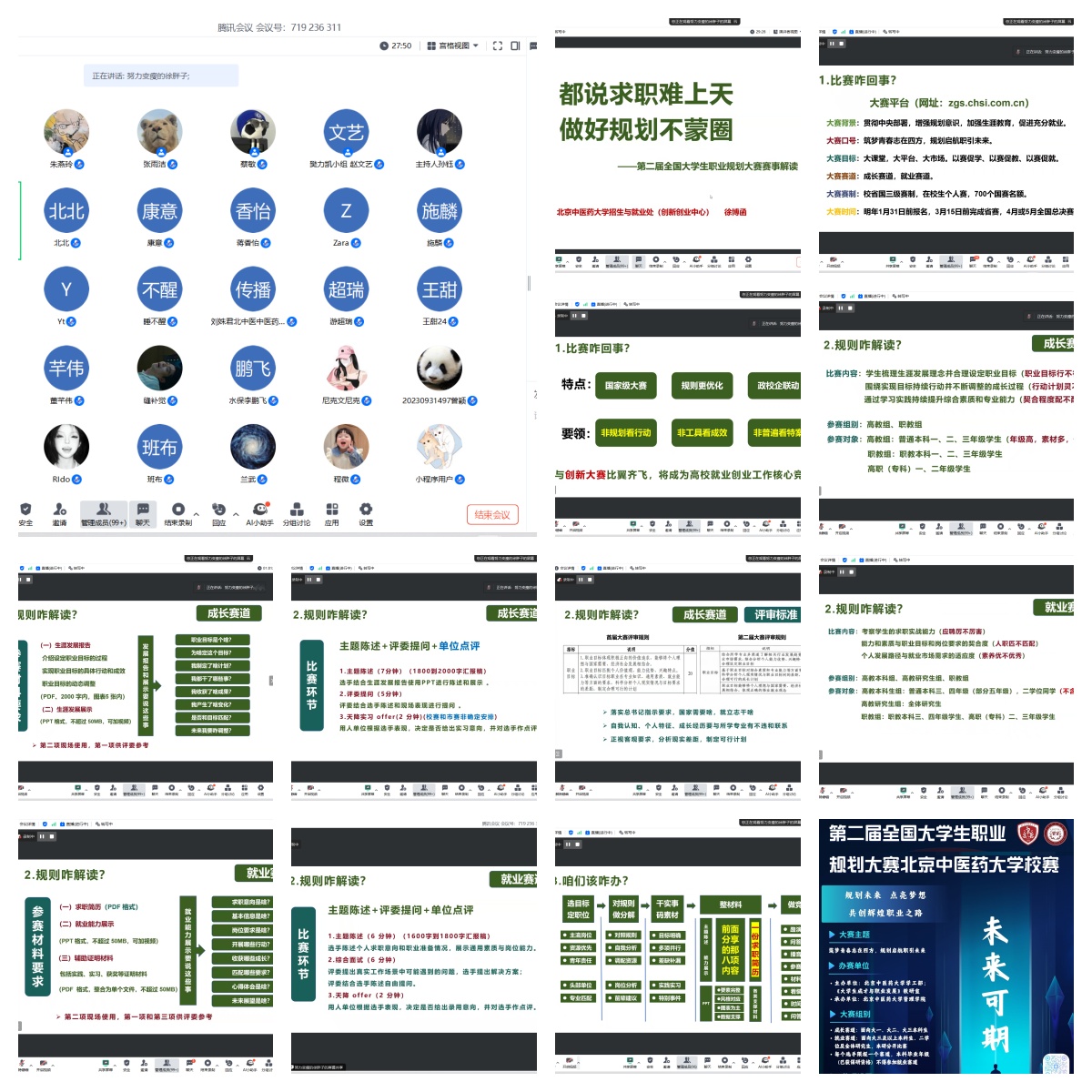 由我校学工部、《大学生成才与职业发展》教研室主办,管理学院承办的第二届全国大学生职业规划大赛北京中医药大学校赛已于2024年11月初开启报名渠道。为进一步引导广大学生以科学严谨的态度和方法规划职业生涯,搭建起学习交流平台,共同探索职业发展的广阔前景,并帮助学生参赛做好准备,2024年11月7日18:00,中国·开云在线上开展了第二届全国大学生职业规划大赛北京中医药大学校赛赛前培训,通过企业微信直播平台面向全体在校生开放,400余人次参与了观看。本次培训邀请了大赛评审经验丰富的招生与就业处的徐博函老师,为参赛同学深入解读比赛规则并提供专业指导。
