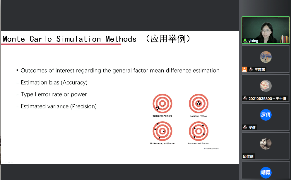 刘一星老师以“从统计学研究到大数据研究”为题,结合自身研究经历,对Monte Carlo数据模拟方法、前瞻性队列研究和多层线性增长模型等复杂模型的应用进行介绍,并对临床文献文本提取与数据挖掘的研究范式探索进行分享,同时,深入探讨了对于心理大数据研究模式的探索以及相关数据收集途径。