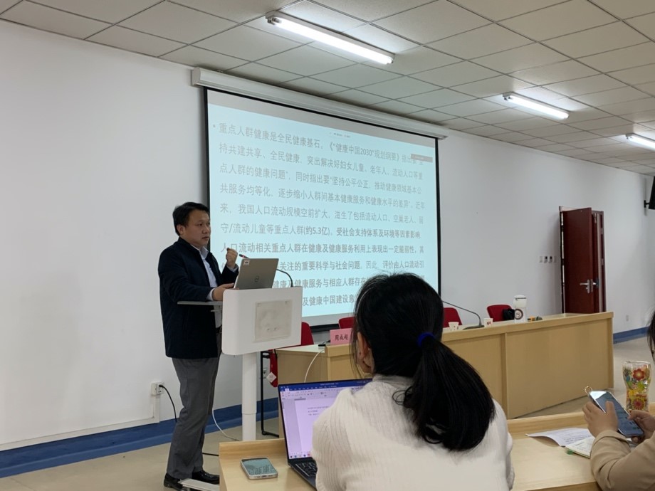 周教授引用习近平总书记“把论文写在祖国大地上”的指示精神,并指出其核心要义为:要解决中国的实际问题。随后周教授介绍了其课题组的主要研究方向和聚焦过程、开展研究工作及未来思路,并着重阐述了“山东农村老年健康队列研究(SREHC)”的研究设计和取得的系列高水平成果,详细介绍了研究方法、研究结果、结论以及政策建议。使同学们对老年人社会资本与认知衰弱这一领域的研究有了全面的认识。