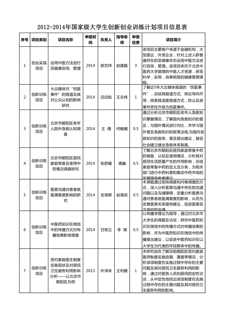 2012-2014年国家级大学生创新创业训练计划项目信息表(管理学院)