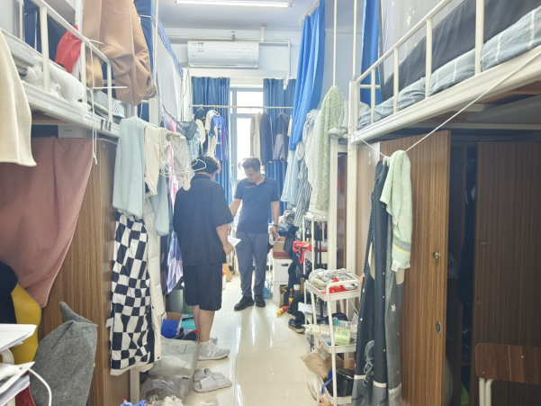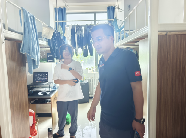 2025年7月11日下午,管理学院周磊副书记、辅导员张瑶萱老师、王妍老师和张毅超老师,在良乡校区看望了部分暑假留校学生,并对宿舍安全进行了检查。
