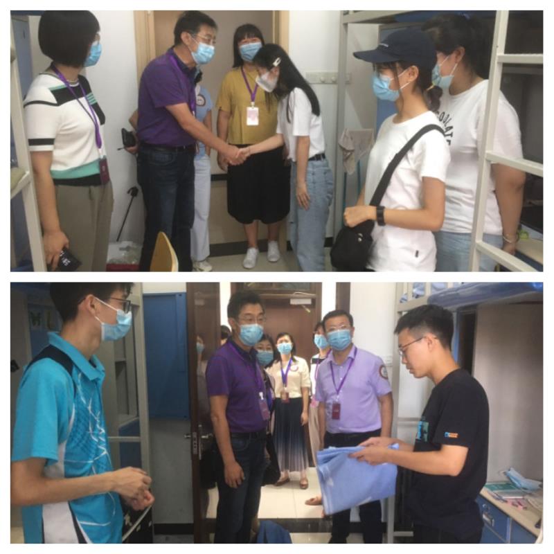 下午,新生们陆续完成了报到手续,返回宿舍安排自己的“新家”。管理学院的领导和老师们,也前往全体管理学院20级新生们的宿舍,就学生们的住宿环境、行李安置与床铺准备情况进行了关心和慰问,希望新生们能够快速适应大学生活,努力拼搏,不负青春,度过充实的四年大学生活。
