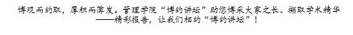 管理学院博约讲坛系列活动是我院教师和研究生开展学术交流与合作的重要平台,是建设一流学科和提升培养质量的重要载体。学院将继续邀请国内外相关领域专家来校,与我院师生进行思维碰撞,开展交流合作。