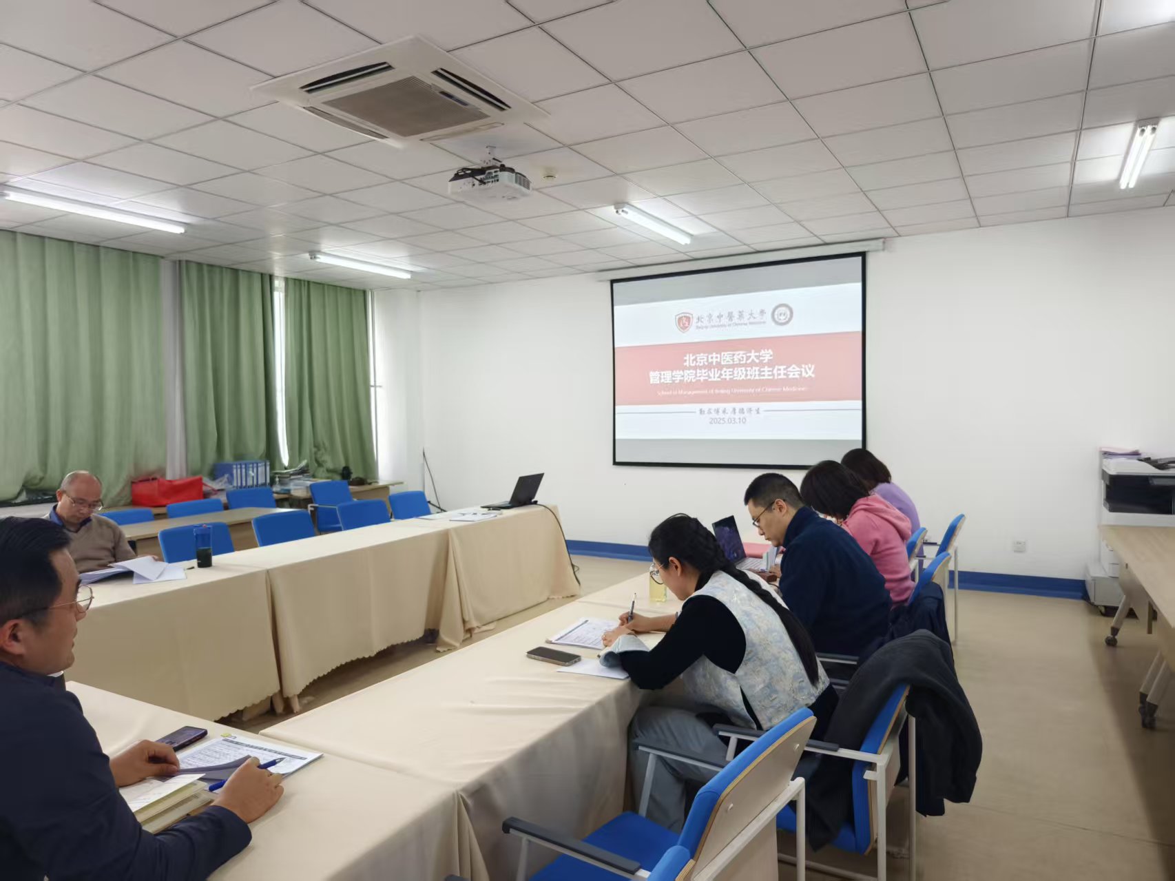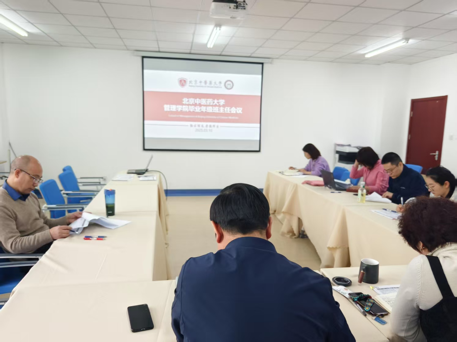 2025年3月10日,管理学院在332会议室召开2025届毕业生班主任会议。管理学院党委书记李蔓荻,院长李瑞锋,党委副书记周磊,毕业生班主任元晓晓、姚若晗、徐敢、闫实、刘亚敏及就业专员张毅超共同参加会议。会议由党委副书记周磊主持。