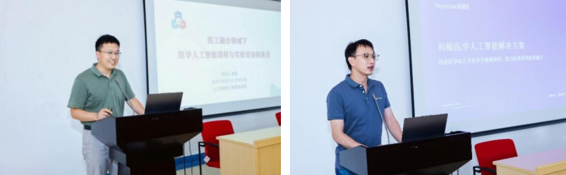 主题报告环节,北京中医药大学马星光教授介绍了《医学人工智能》通识课程建设经验,强调免编程实验和案例驱动教学,持续引入大模型和提示编程等新内容;首都医科大学刘冬冬副教授分享了面向医学生的人工智能通识教育探索,提出“5C闭环模型”,并在2024级全面推行《人工智能导论》课程的经验;北京理工大学辛怡副教授介绍了《数据挖掘在生物医学中的应用》课程,通过“两线三域”学习链路和“立体拼图”模式,提升学生跨学科实践能力;安徽医科大学宋国强教授总结了安医大信息管理与大数据专业二十余年的建设成果,强调导师制、创新实践与跨年级指导在人才培养中的作用。