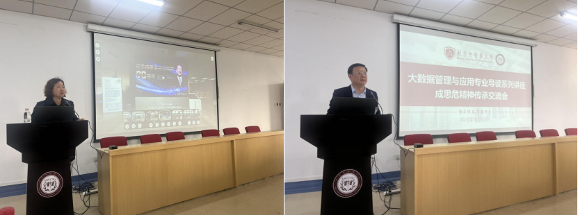 10月15日下午,管理学院大数据管理与应用专业(成思危拔尖人才班)导读系列讲座——成思危精神传承交流会,于我校良乡校区管理学院331会议室召开。中国科学院大学教育基金会成思危基金理事长、班级名誉班主任成卓,北京中医药大学校党委副书记、纪委书记刘江平出席会议。管理学院党委书记李蔓荻、院长李瑞锋、副院长石学峰、副书记周磊,人工智能与大数据教研室主任郭凤英、党支部书记韩爱庆、教研室王丽老师,班主任赵步天、石泽华等老师,以及全体2025级大数据管理与应用专业(成思危拔尖人才班)的同学参加了会议。会议由管理学院院长李瑞锋主持。